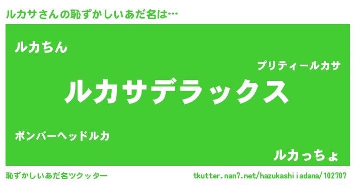 | ヘコむあだ名 | 『ルカサ(笑)』『牛乳』『ルカにー』 |