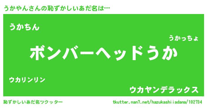 | 欧米人風あだ名 | 『ダニエルうかやん』『ウサインうかやん』 |