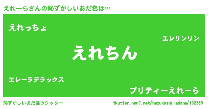 | 意味不明あだ名 | 『永久保存えれーら』『ペロリンえれーら』 |