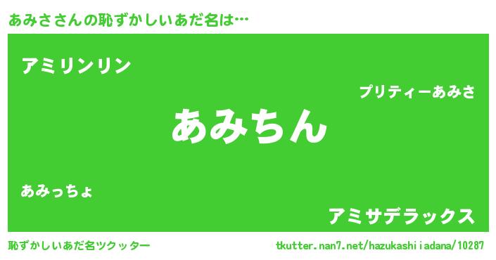 | 意味不明あだ名 | 『永久保存あみさ』『自称あみさ』 |