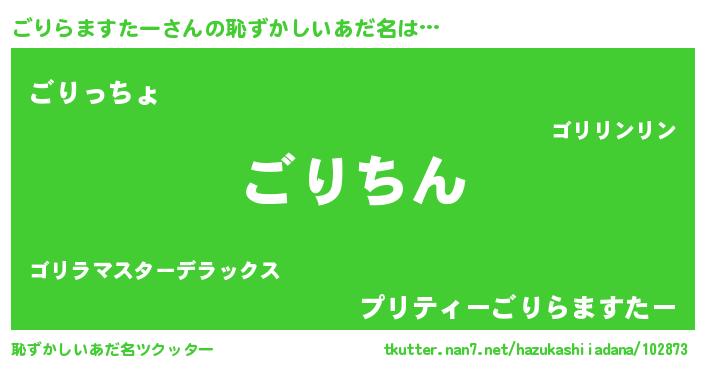 | 意味不明あだ名 | 『住所不定無職ごりらますたー(13歳)』 |