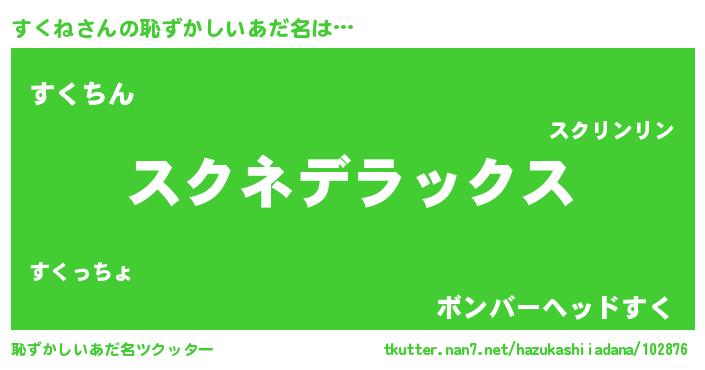 | ヘコむあだ名 | 『すくね(爆)』『すくぷりん』『牛乳』 |