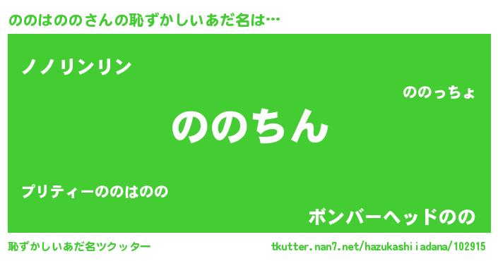 | ヘコむあだ名 | 『ののはのの(苦笑)』『ののっ子』 |