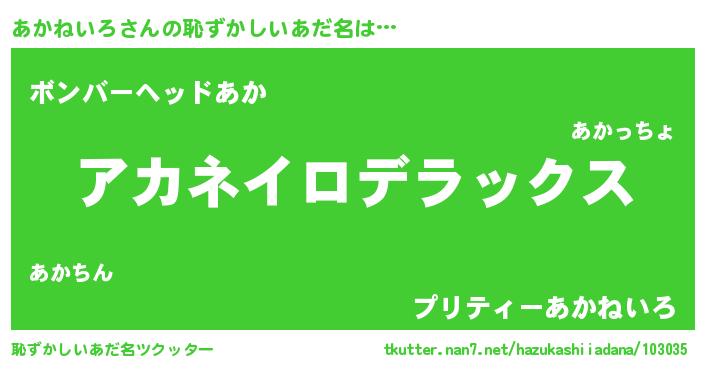 | 料理風あだ名 | 『あかねいろのカルパッチョ風』 |