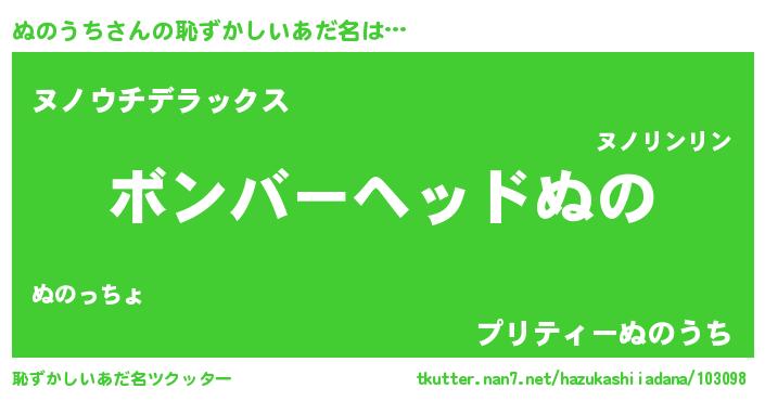 | ヒーロー風カッコイイあだ名 | 『慈愛の使者ぬのうち』『天弓騎士ヌノ』 |