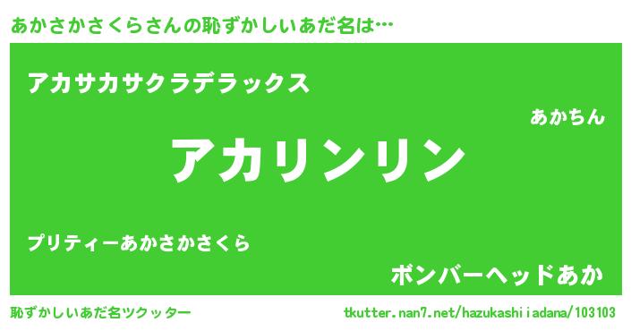 | 胡散臭い通販商品みたいなあだ名 | 『信頼と実績のサプリメント…その名も「あかさかさくら」』 |
