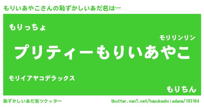 | ヒーロー風カッコイイあだ名 | 『スーパーモリイアヤコ』『暗黒騎士モリ』 |