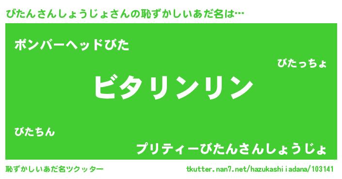 | 女子向けラノベタイトル風あだ名 | 『びたんさんしょうじょは平凡を望む』 |