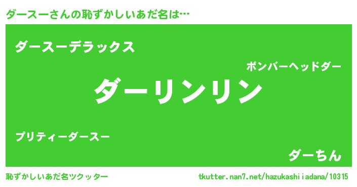 | 男性向けラノベタイトル風あだ名 | 『転生したらダースーだった件』 |