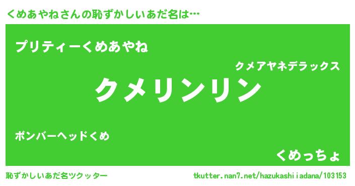| ヘコむあだ名 | 『くめっ子』『くめっふぃ~』 |