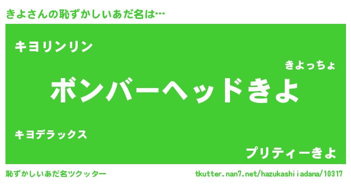 | ヒーロー風カッコイイあだ名 | 『仮面キヨダー』『正義の使者きよ』 |