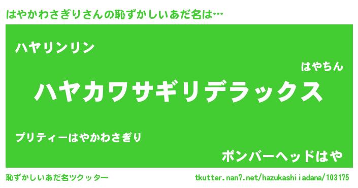 | ヘコむあだ名 | 『はやっ子』『はやかわさぎり(爆)』 |