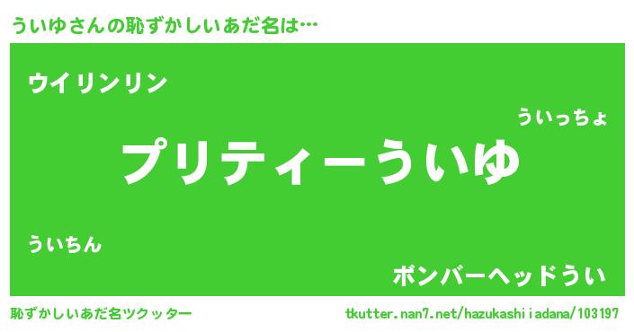 | 男性向けラノベタイトル風あだ名 | 『この素晴らしい世界にういゆを!』 |