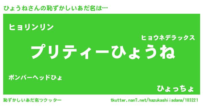 | ヘコむあだ名 | 『ひょにー』『ひょお』『酢こんぶ』 |