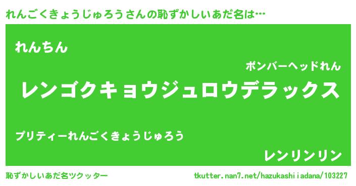 | 意味不明あだ名 | 『自称れんごくきょうじゅろう』 |