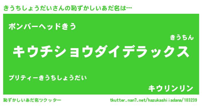 | 男性向けラノベタイトル風あだ名 | 『Re:きうちしょうだいから始める異世界生活』 |