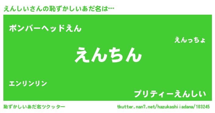 | ヘコむあだ名 | 『えんしい(遠い目)』『えんにー』 |