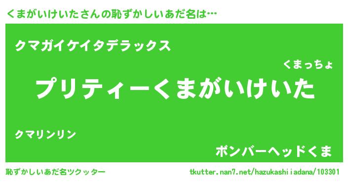 | ヒーロー風カッコイイあだ名 | 『スーパークマガイケイタ』 |
