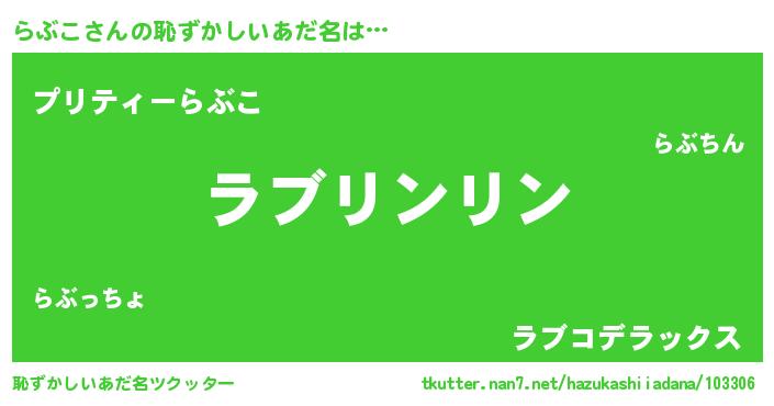 | 意味不明あだ名 | 『とにかく怪しいらぶこ』『自称らぶこ』 |