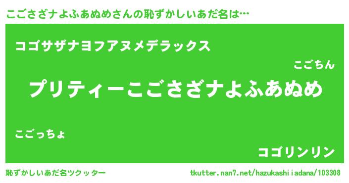| ヒーロー風カッコイイあだ名 | 『スーパーコゴサザナヨフアヌメ』 |