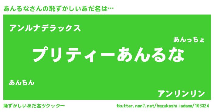 | 意味不明あだ名 | 『ペロリンあんるな』『自称あんるな』 |