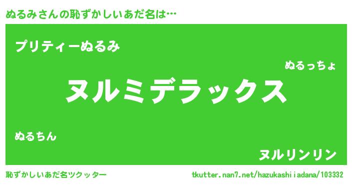 | 意味不明あだ名 | 『自称ぬるみ』『ペロリンぬるみ』 |