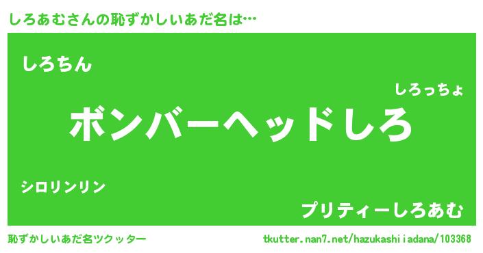| ヘコむあだ名 | 『しろあむ(震え声)』『しろにゅー』 |