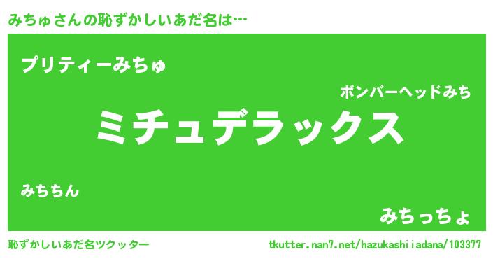 | 欧米人風あだ名 | 『ケンブリッジみちゅ』『マイケルみちゅ』 |