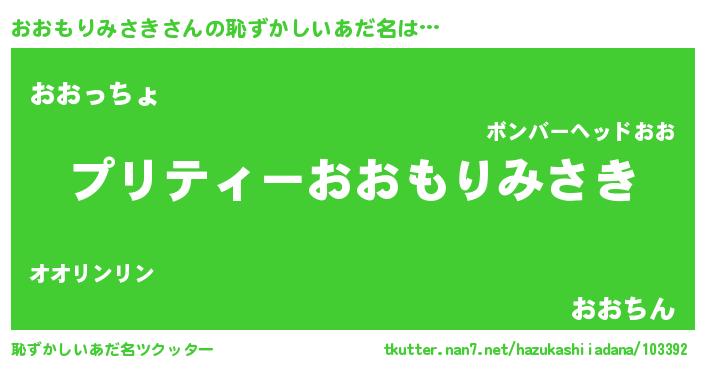 | 男性向けラノベタイトル風あだ名 | 『オオモリミサキアートオンライン』 |