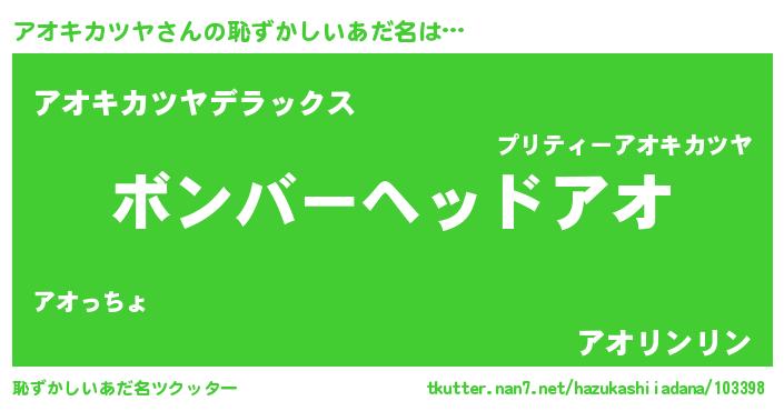 | 女子向けラノベタイトル風あだ名 | 『アオキカツヤが死なない童話 林檎のアオキカツヤの診療簿』 |