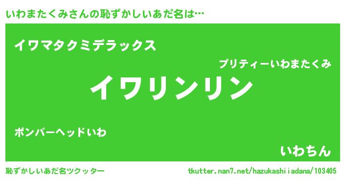 | ヘコむあだ名 | 『いわお』『いわまたくみ(苦笑)』 |