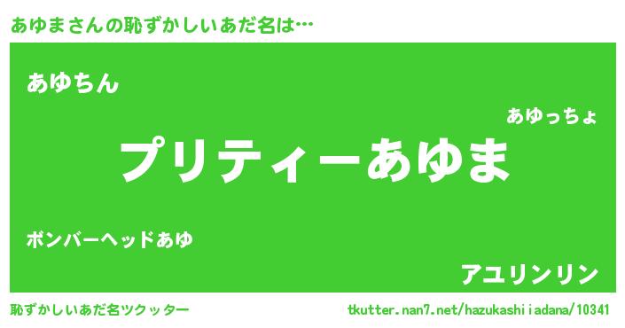 | 欧米人風あだ名 | 『マイケルあゆま』『ダルビッシュあゆま』 |