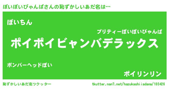 | 男性向けラノベタイトル風あだ名 | 『この素晴らしい世界にぽいぽいびゃんばを!』 |