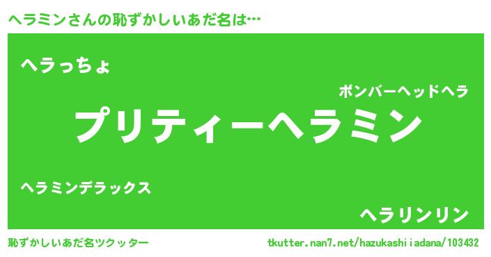 | 男性向けラノベタイトル風あだ名 | 『ヘラミンの憂鬱』 |