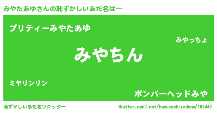 | ヘコむあだ名 | 『みやたあゆ(小並感)』『みやにー』 |