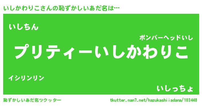 | ヒーロー風カッコイイあだ名 | 『スーパーイシカワリコ』『暗黒騎士イシ』 |