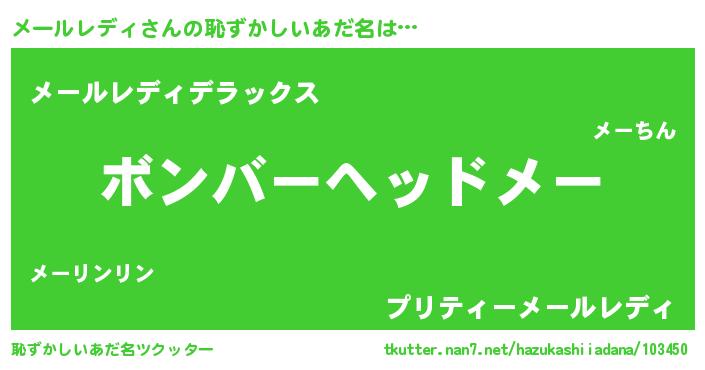 | ヘコむあだ名 | 『メーもー』『メールレディ(笑)』 |
