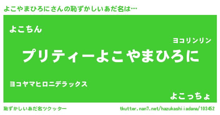 | 欧米人風あだ名 | 『よこやまひろに・ステッグマイヤー』 |