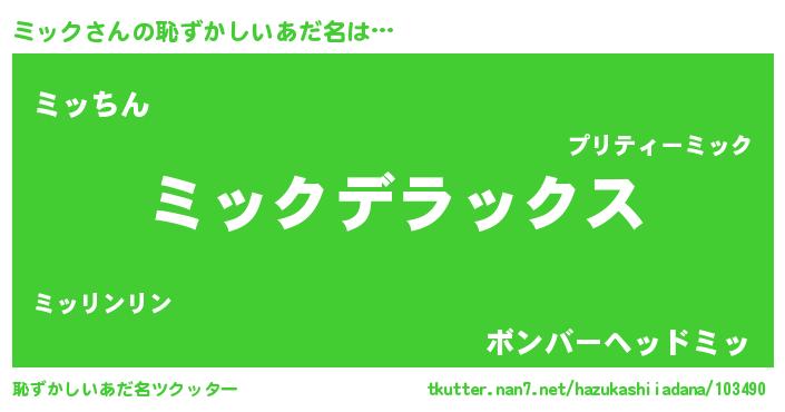 | 胡散臭い通販商品みたいなあだ名 | 『あなたにだけ特別に提供する世界で10本だけ現存している希少なブランデー…その名も「ミック」』 |