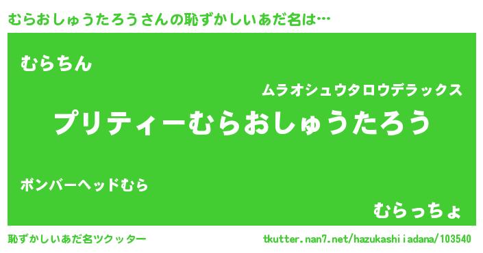 | ヒーロー風カッコイイあだ名 | 『スーパームラオシュウタロウ』 |