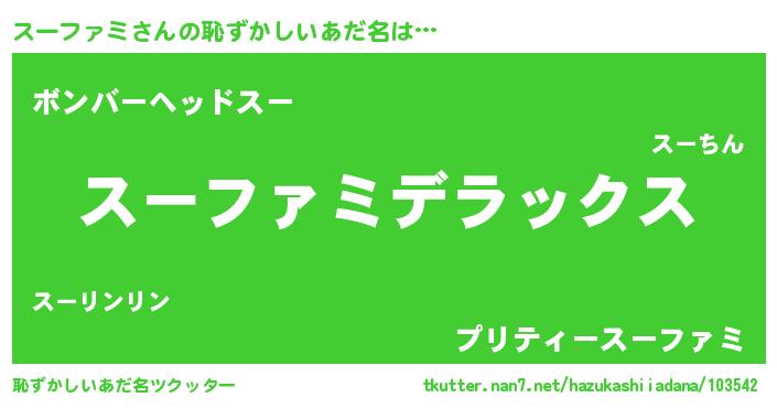 | 意味不明あだ名 | 『自称スーファミ』『ペロリンスーファミ』 |