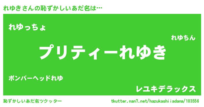 | 男性向けラノベタイトル風あだ名 | 『れゆき~年齢イコール彼女いない歴の魔法使い~』 |