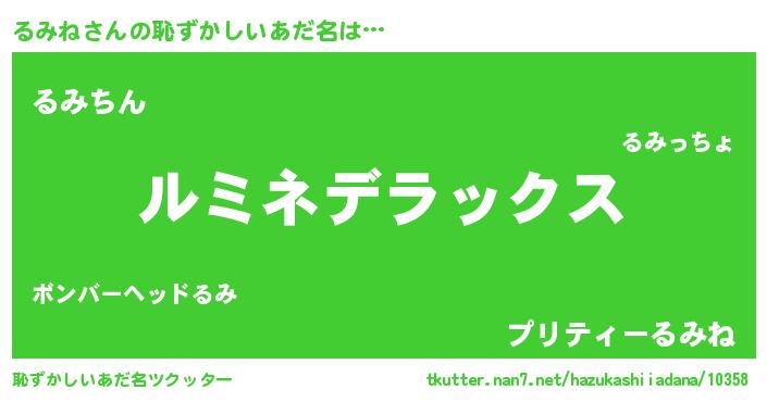 | ヘコむあだ名 | 『るみね(小並感)』『るみっふぃ~』 |