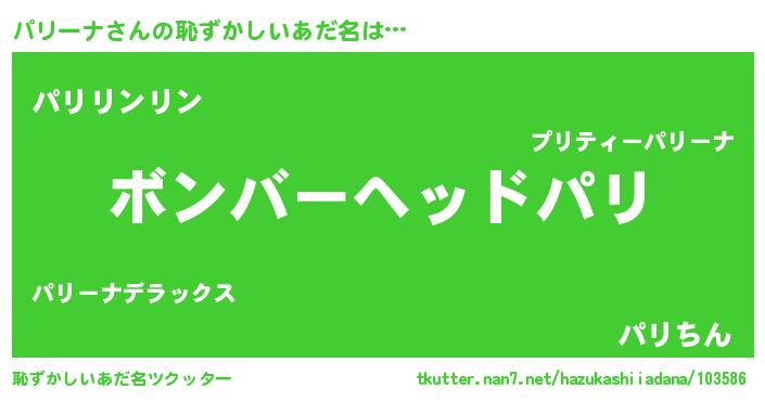 | 女子向けラノベタイトル風あだ名 | 『パリーナ恋絵巻』『パリーナ様がみてる』 |