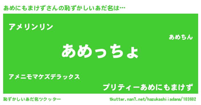 | 意味不明あだ名 | 『あめにもまけずフォーエバー』 |