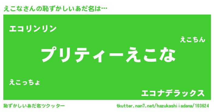 | 意味不明あだ名 | 『ペロリンえこな』『自称えこな』 |