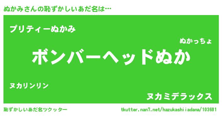 | ヘコむあだ名 | 『ぬかにゅー』『つくし』『ぬかを』 |