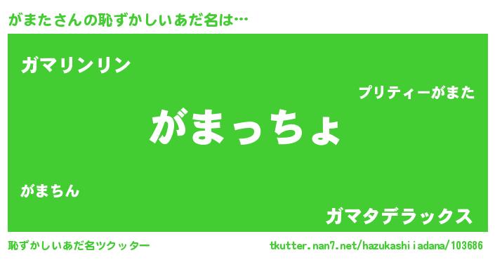 | 欧米人風あだ名 | 『がまたクリステル』『ウサインがまた』 |