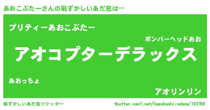| 意味不明あだ名 | 『自称あおこぷたー』 |