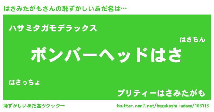 | ヘコむあだ名 | 『はさふぇ~』『はさみたがも(笑)』 |